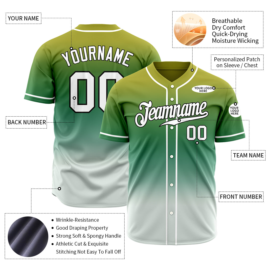 Custom Gradient Teal Green Baseball Jersey Full Button Down Fans Special Edition Authentic Shirt