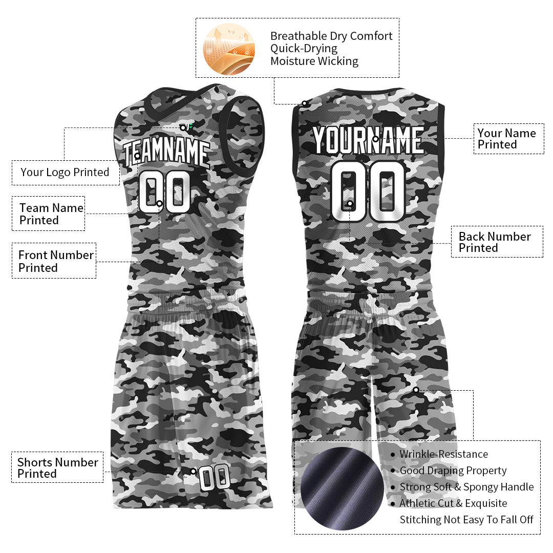 Custom Gray Camo Basketball Uniform Design Your Own Mesh Jersey