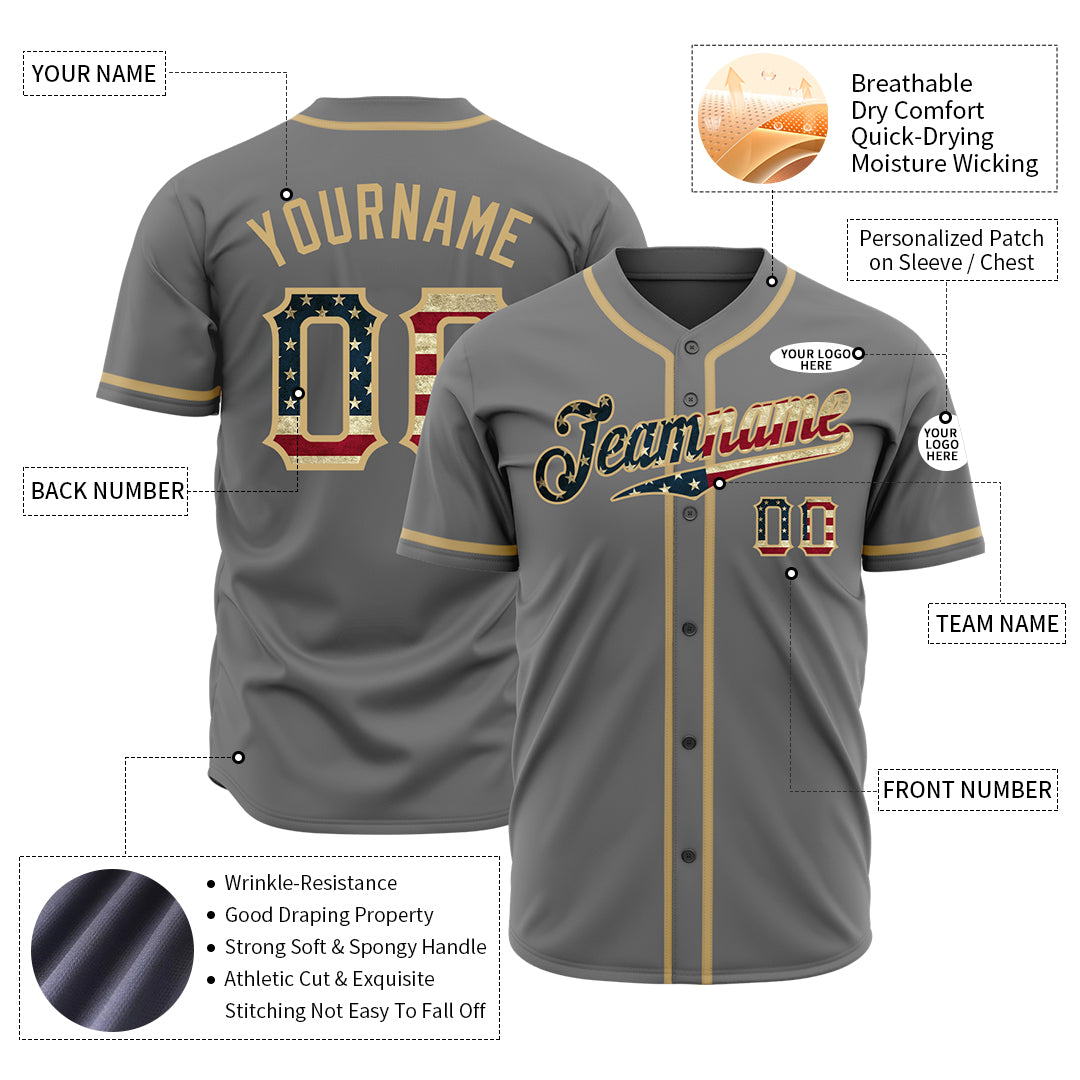Custom Gray National USA Flag Fans Special Edition Authentic Vintage Baseball Jersey