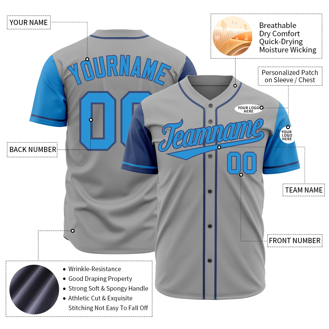 Custom Gray Two Tone Fashion Baseball Jersey Authentic Hip Hop Sportswear TShirt