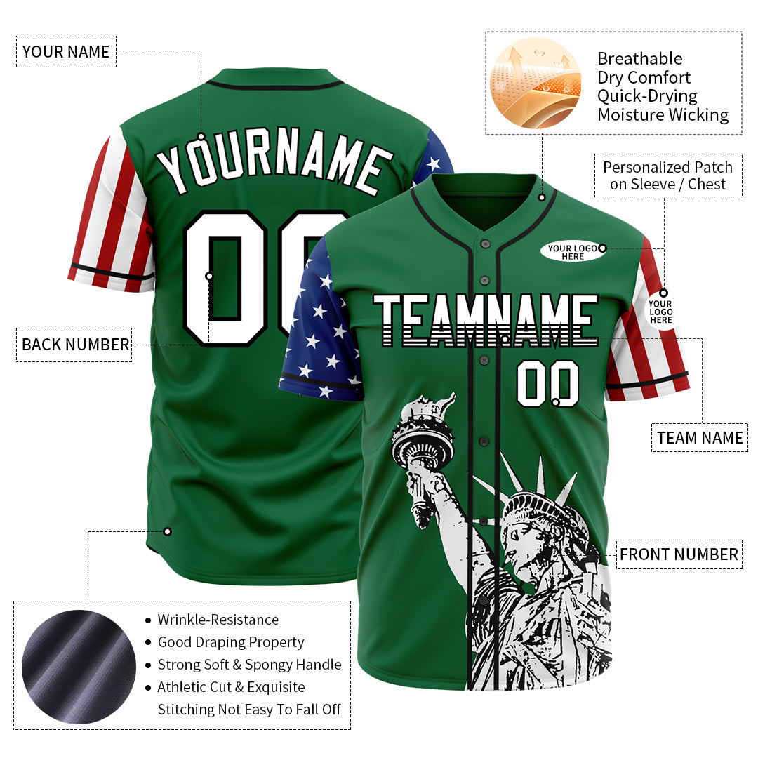 Personalized Green USA Flag Baseball Jersey for Kids Adult