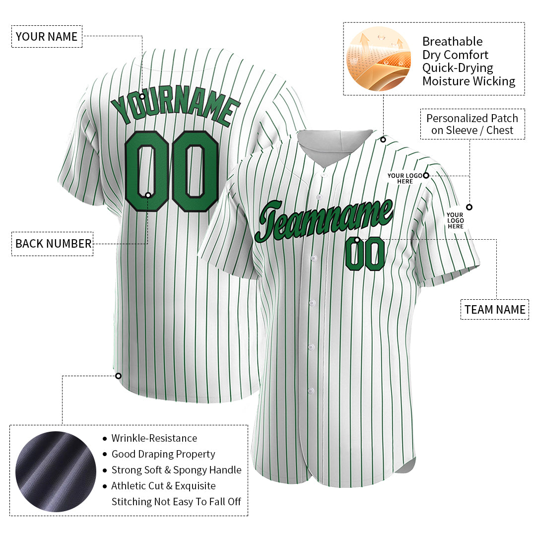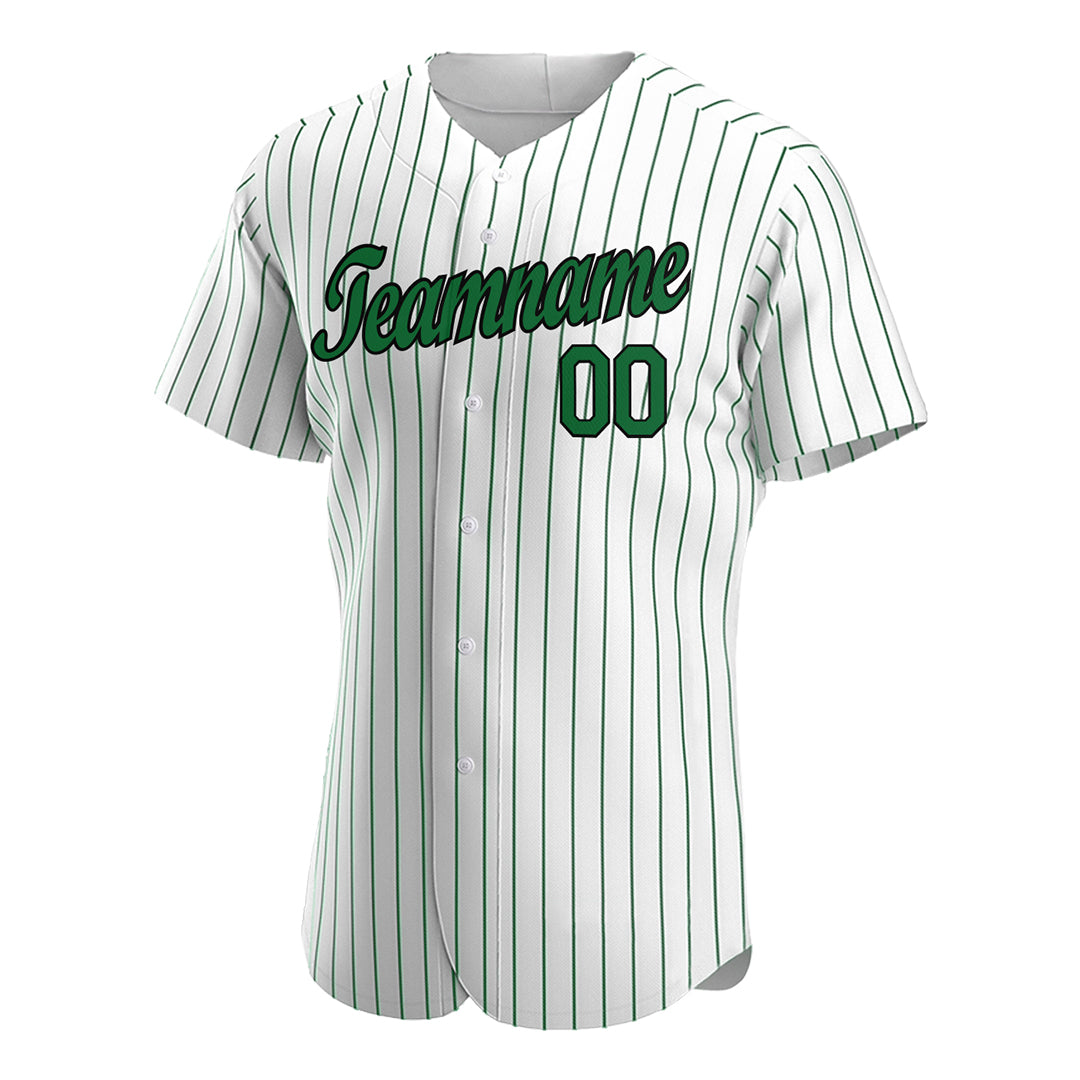 Custom Green Pinstripe Baseball Jersey Authentic Button Down Vintage White Shirt