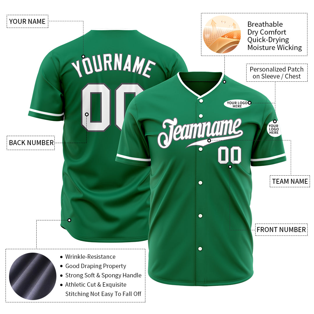 Personalized Kelly Green Baseball Jersey Stitched No Minimum