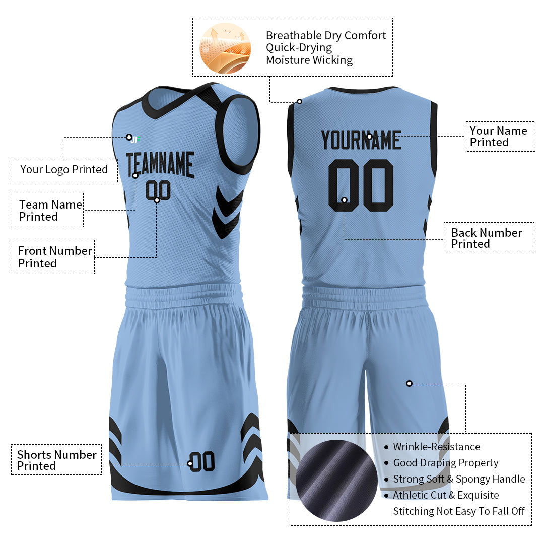 Personalized Light Blue Basketball Suit Prined For Men/Women/Youth