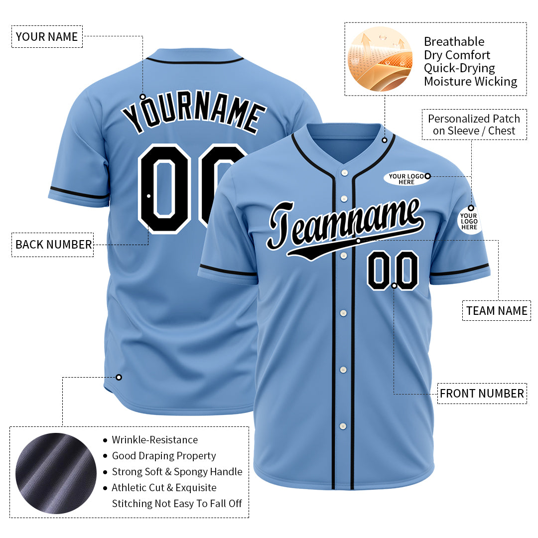 Personalized Light Blue Athletic V-Neck Baseball Jersey