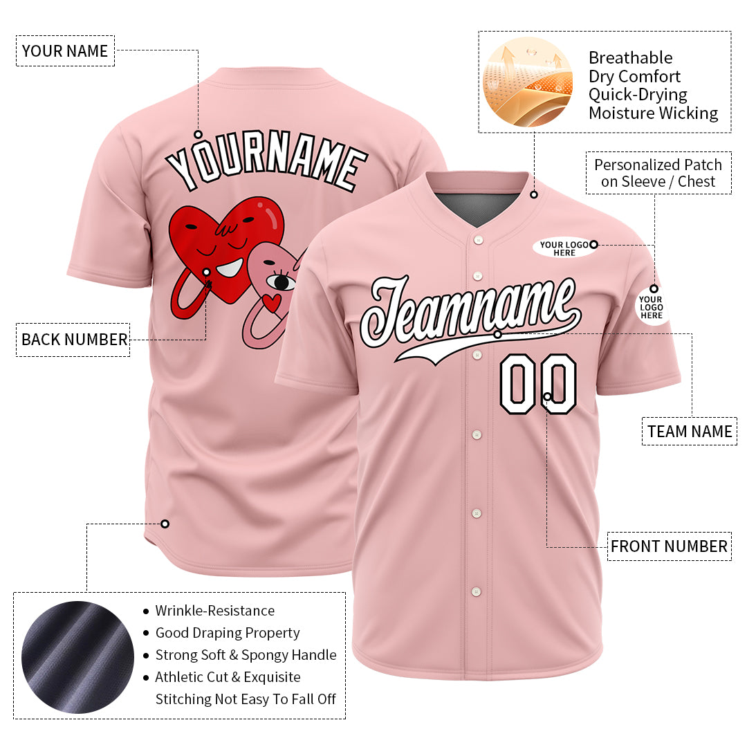 Custom Light Pink Valentine's Day Baseball Jersey Fans Special Edition Authentic Full Button Down Shirt