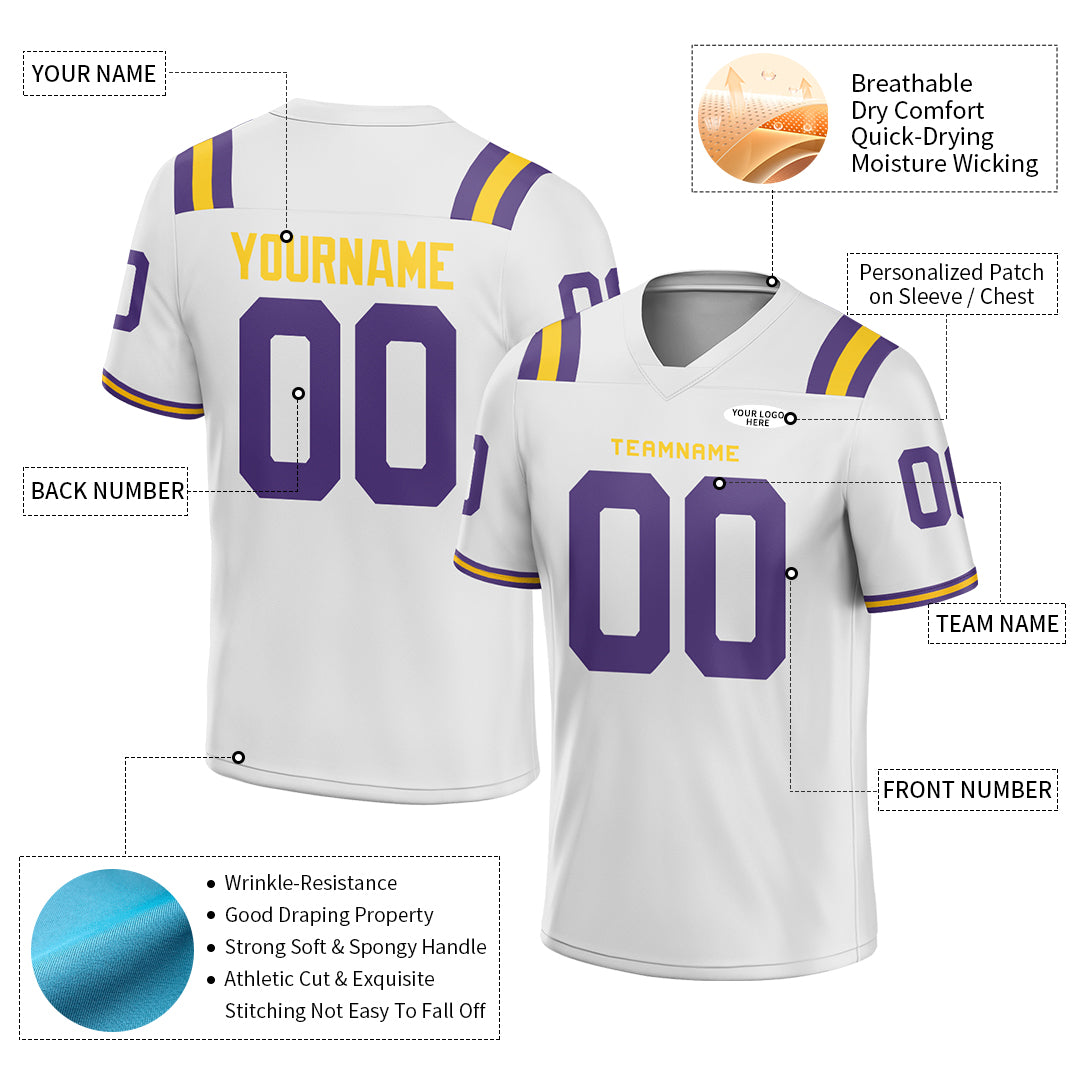 Custom White Football Jersey Athletic Shirt For Adult Youth Unisex