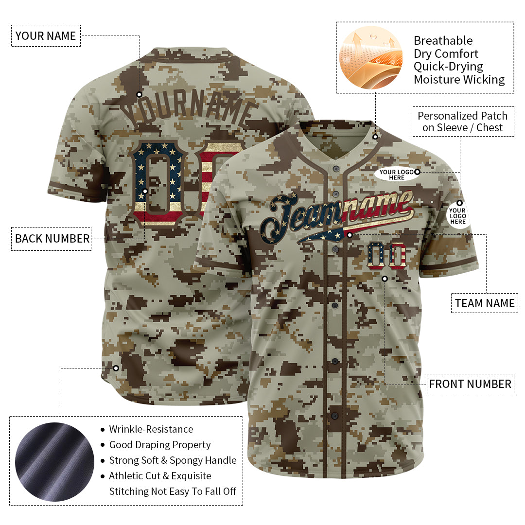 Personalized Camo National Flag Baseball Jersey for Kids Adult