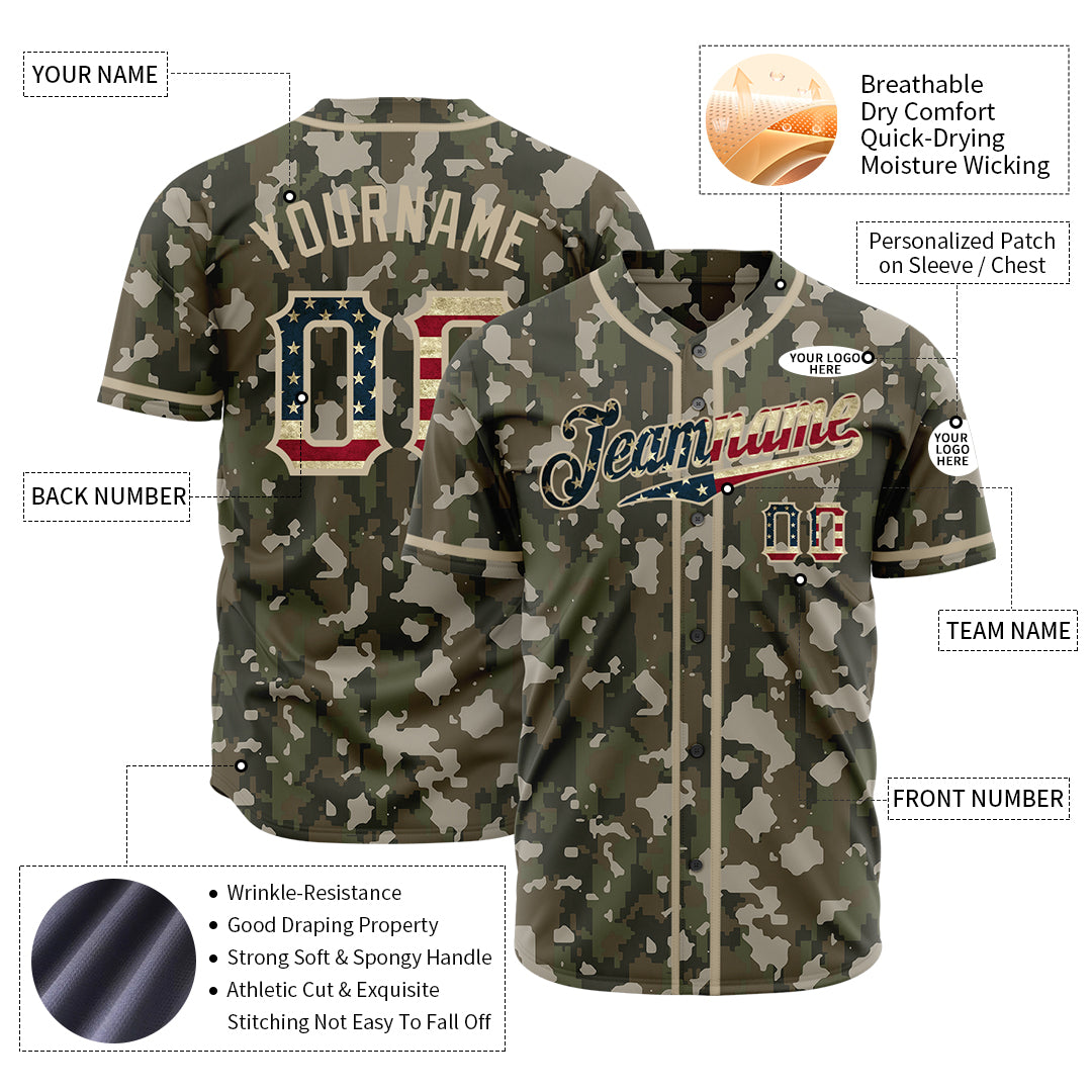Custom National Flag Camo Shirts Fans Special Edition Authentic Vintage Baseball Jersey