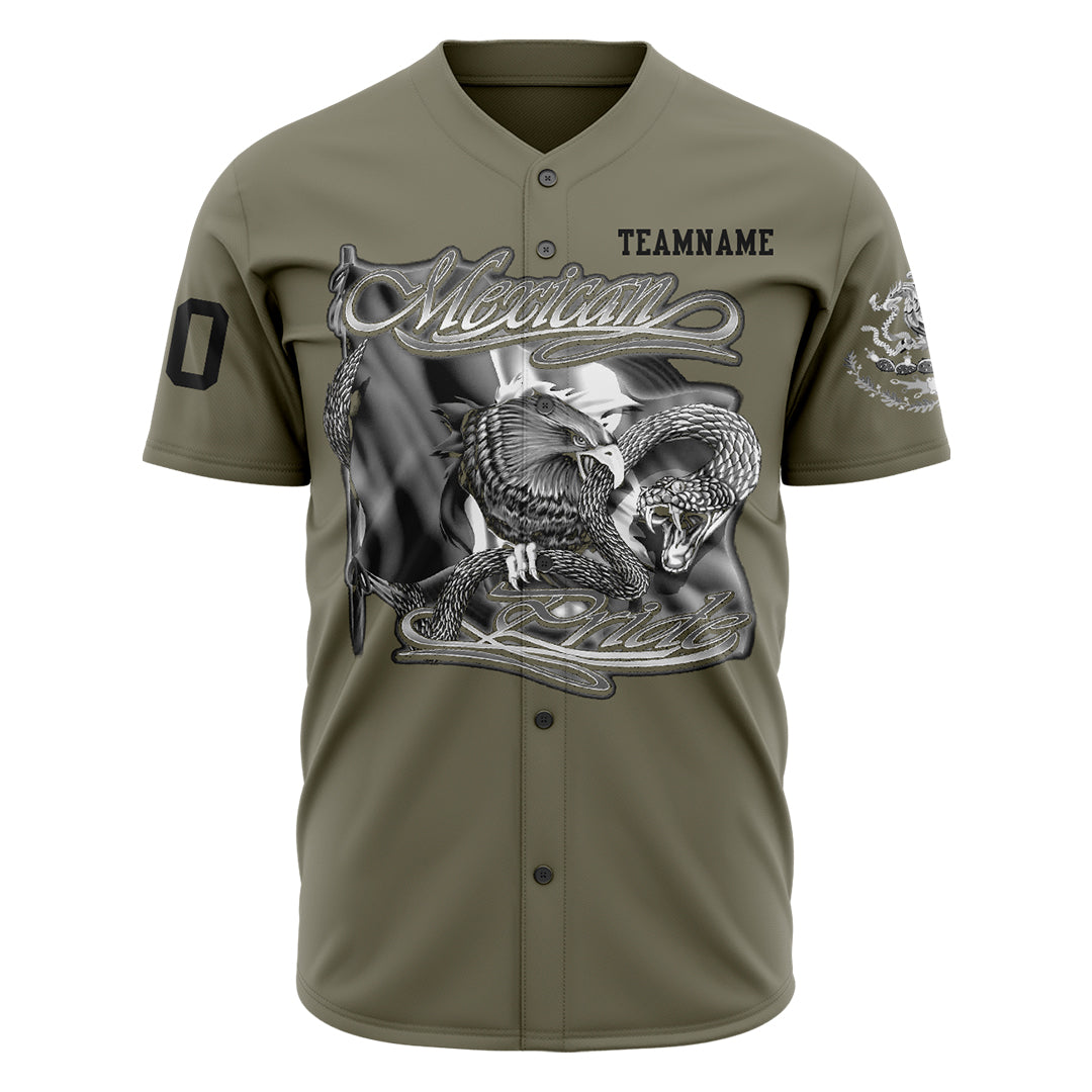 Personalized Olive Mexican Flag Baseball Jersey with Name