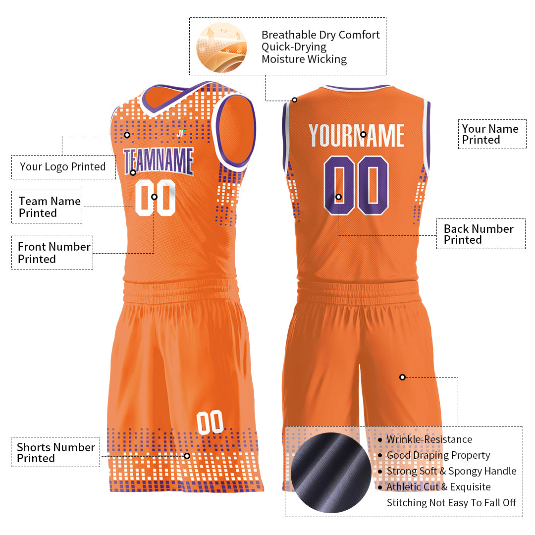 Custom Orange Basketball Uniform Print Athletic V Neck Mesh Jersey Design Your Own