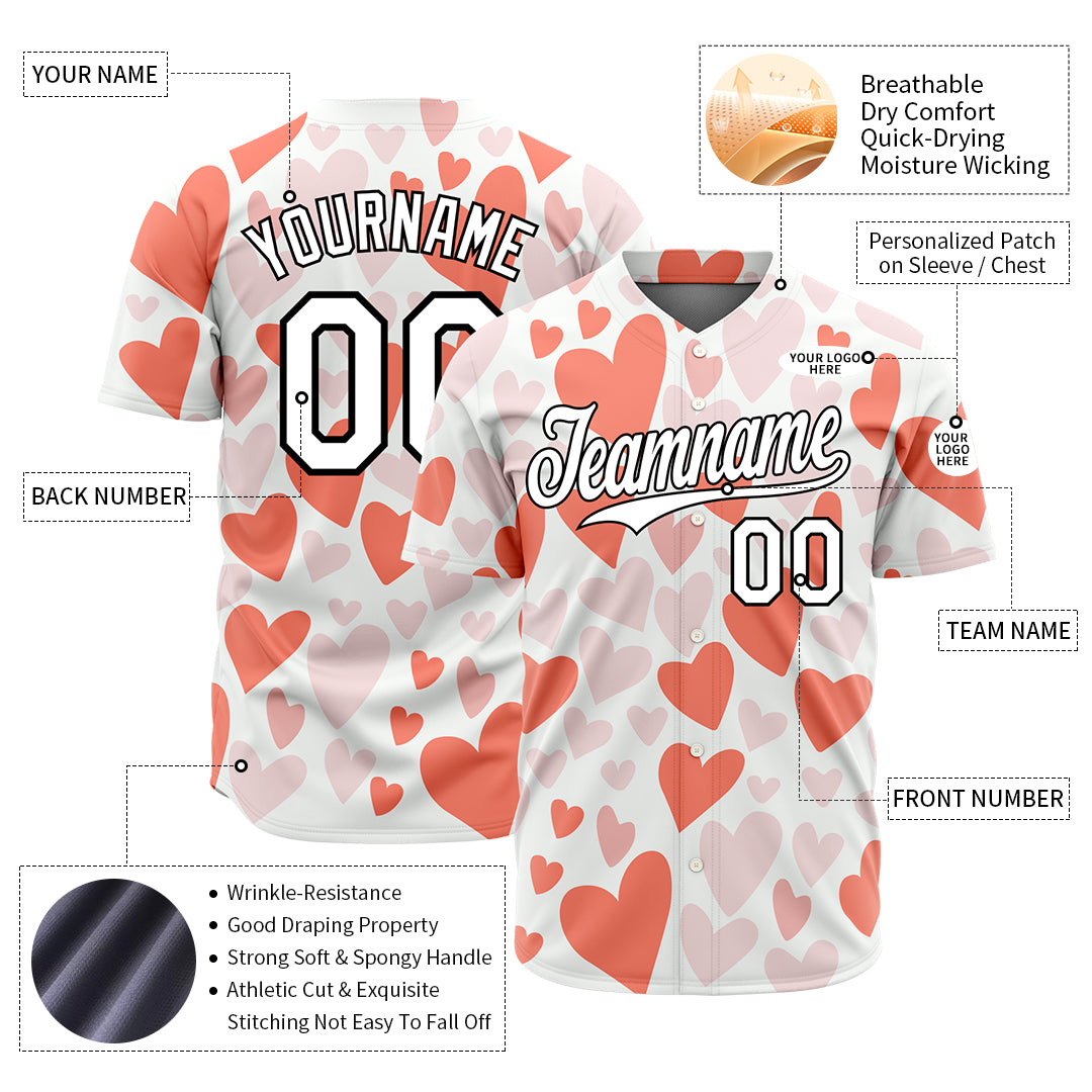 Custom Orange Heart Valentine's Day Baseball Jersey Fans Special Edition Authentic Full Button Down Shirt