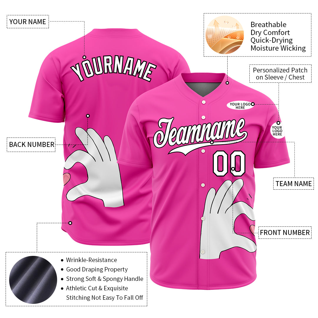 Custom Pink Valentine's Day Baseball Jersey Fans Special Edition Authentic Full Button Down Shirt