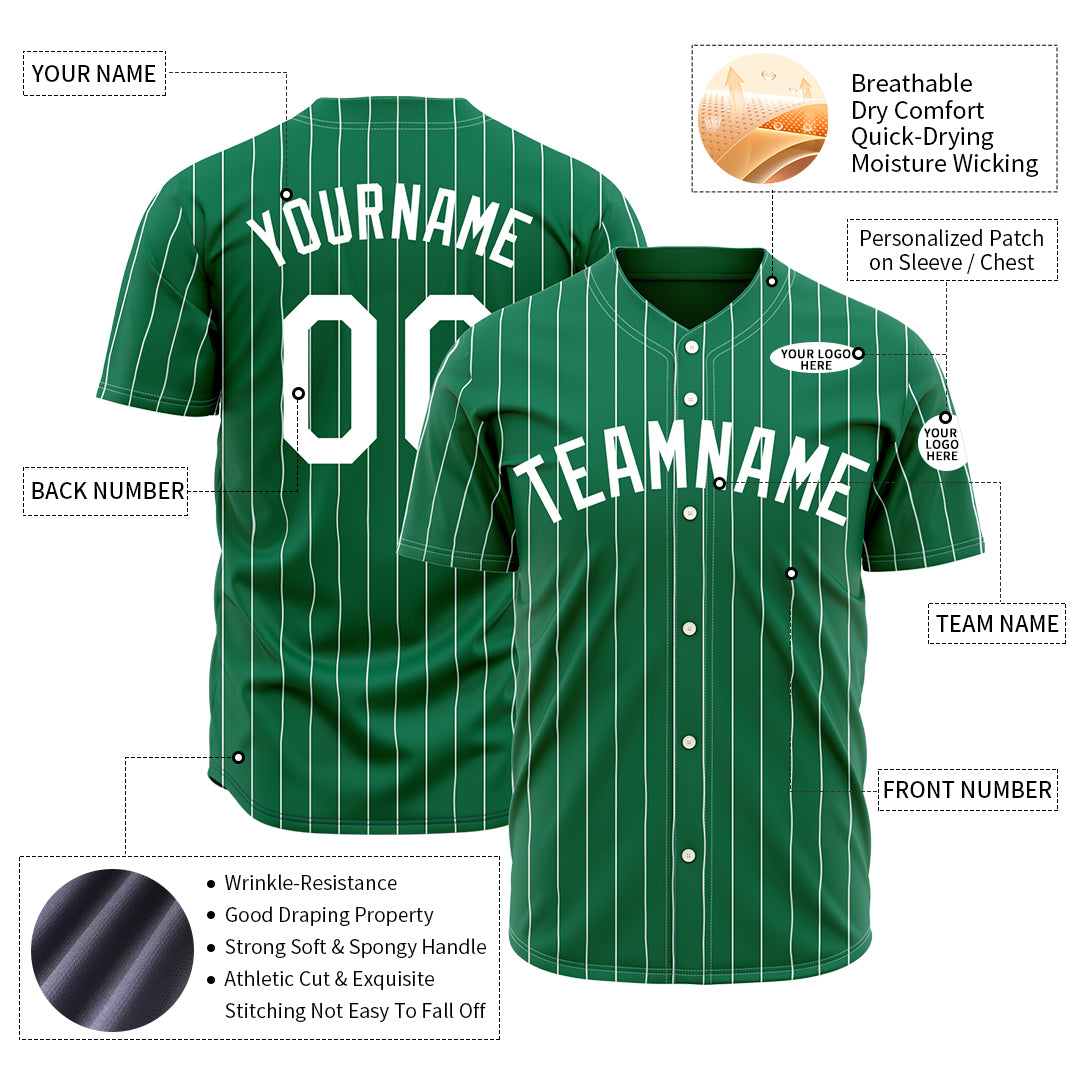 Custom Pinstripe Kelly Green Full Button Down Mesh Fans Special Edition Authentic Baseball Jersey