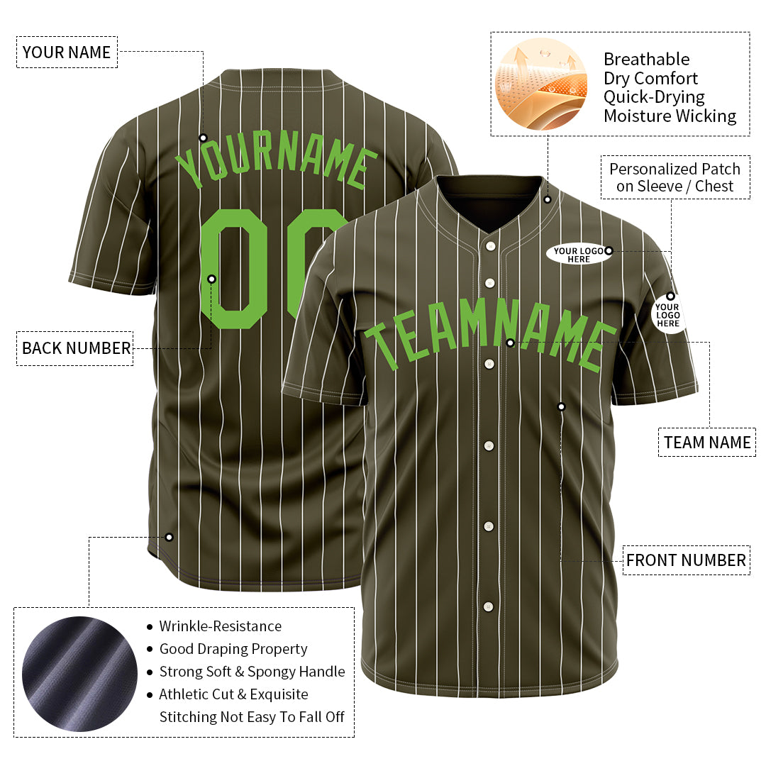 Custom Pinstripe Olive Full Button Down Mesh Fans Special Edition Authentic Baseball Jersey