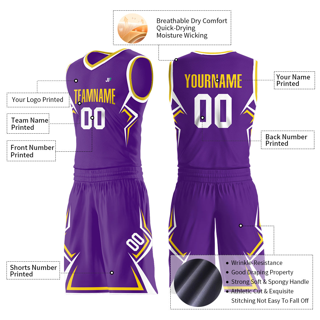 Custom Purple Basketball Uniform Print Name Number Athletic V Neck Mesh Jersey Design Your Own