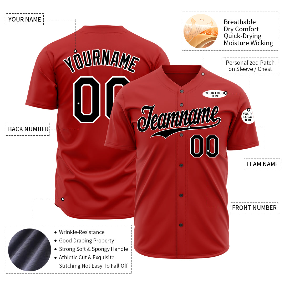 Custom Red Baseball Jersey Authentic Hip Hop Button Down Vintage Shirt
