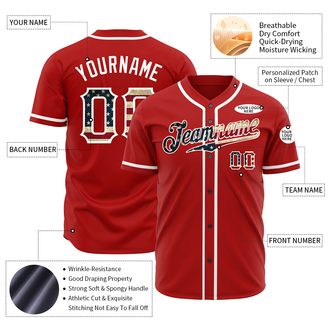 Custom Red National USA Flag Fans Special Edition Authentic Vintage Baseball Jersey