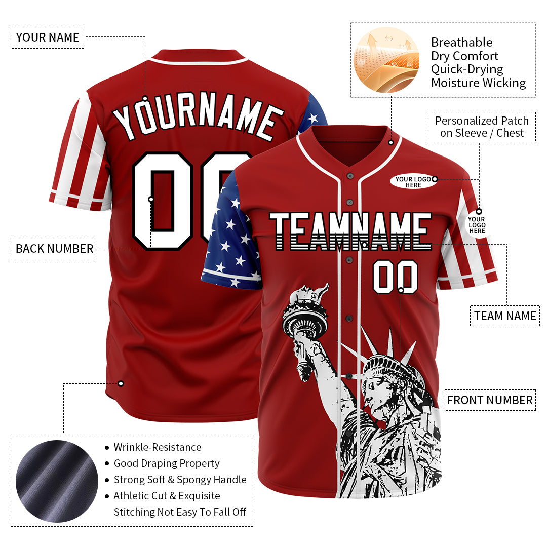 Custom Red National USA Flag Two Tone Authentic Vintage Baseball Jersey