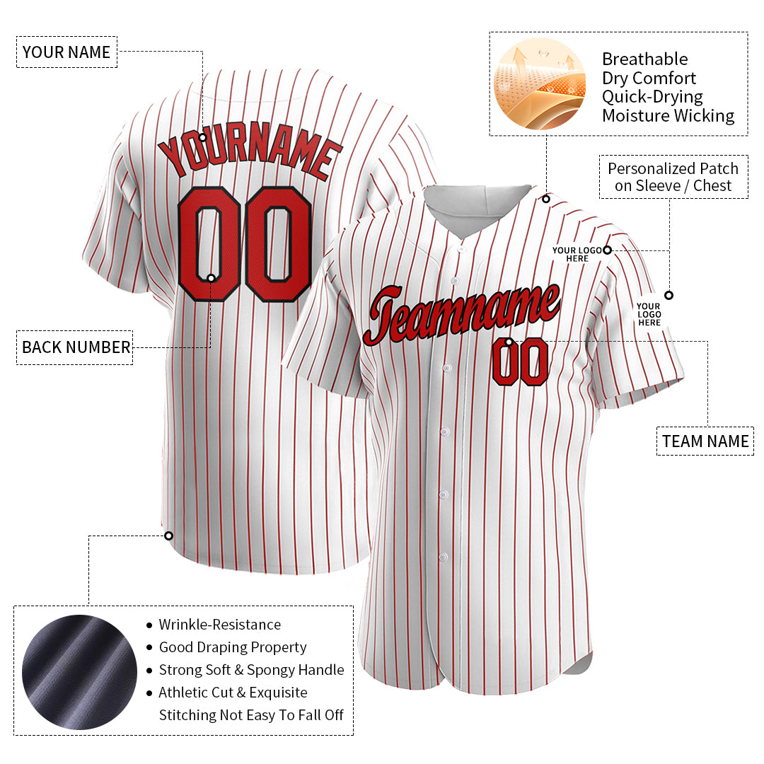 Custom Red Pinstripe Baseball Jersey Authentic Button Down Vintage White Shirt