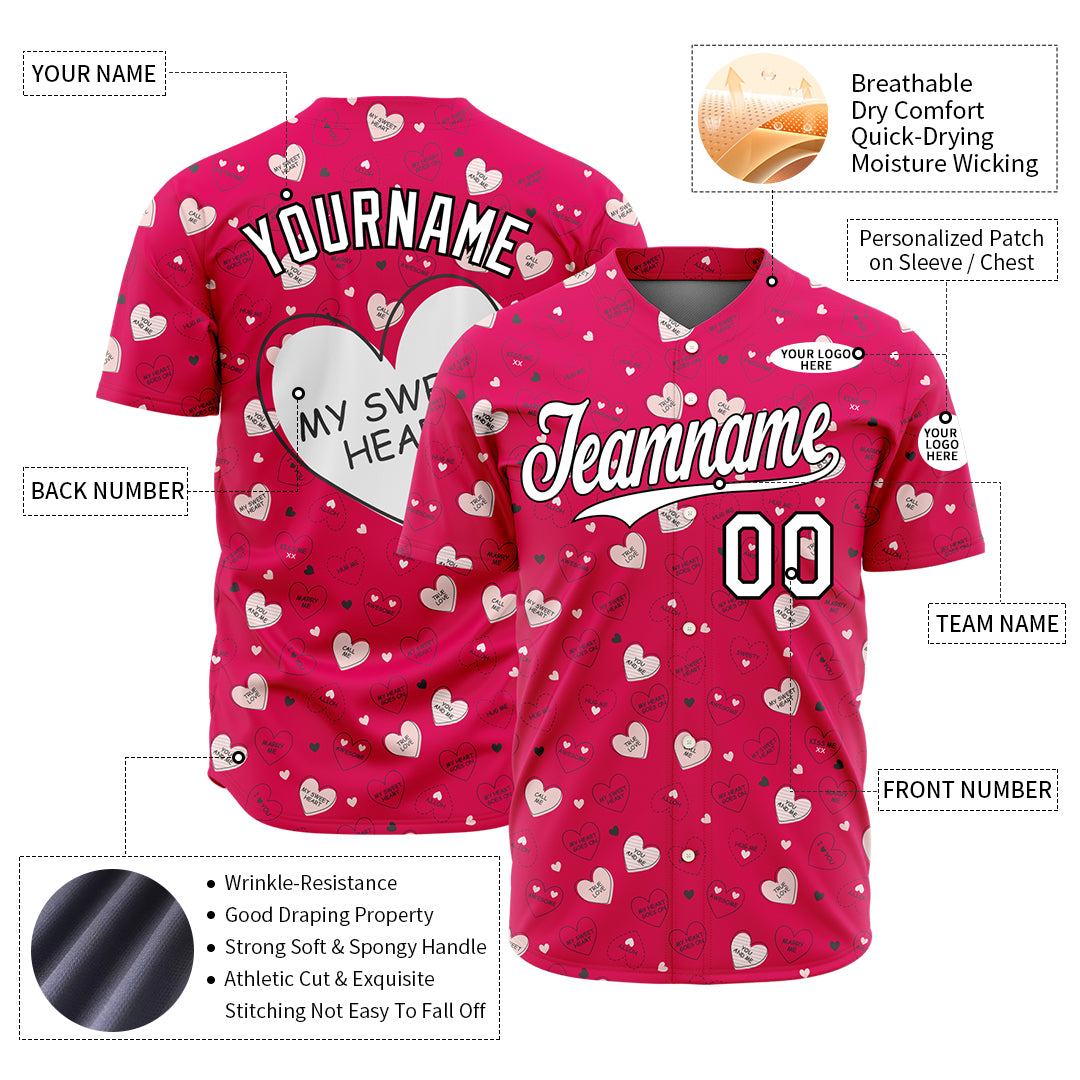 Custom Valentine's Day Baseball Jersey with Name
