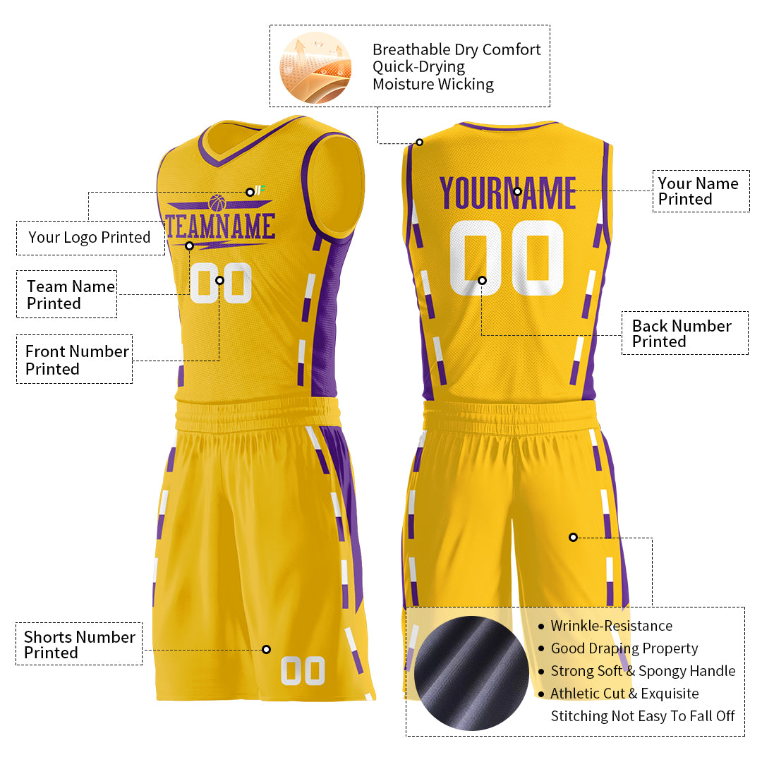 Custom Reversible Yellow Basketball Uniform Hip Hop Athletic Sports Shirts Mesh Jersey
