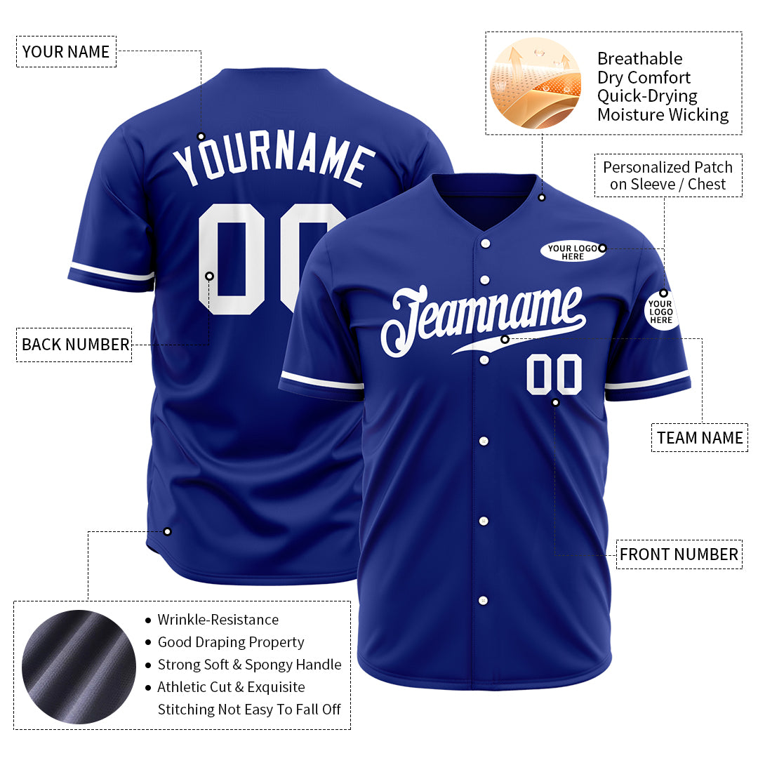 Custom Royal Baseball Jersey Stitched Authentic Button Down Vintage Shirt