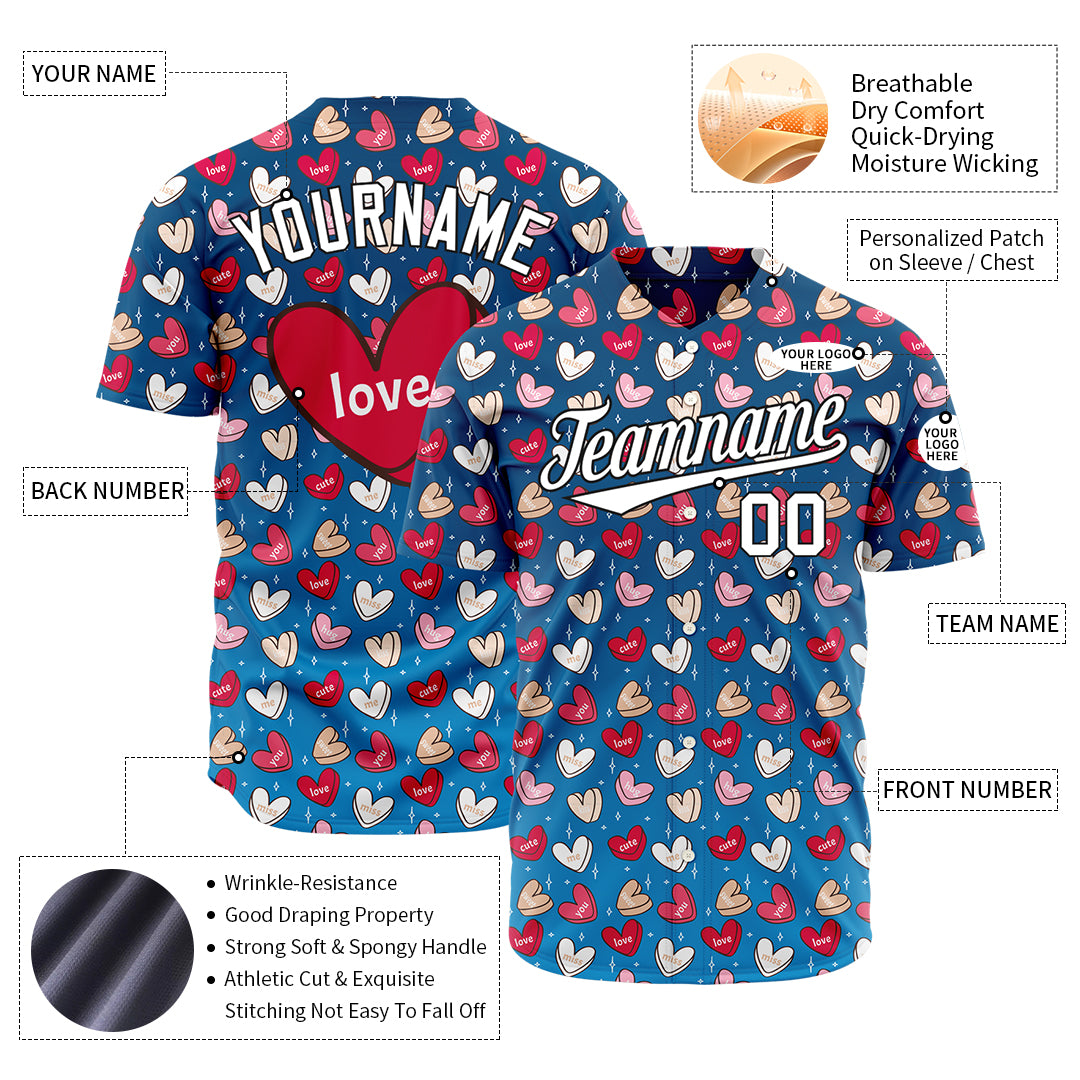 Custom Royal Heart Valentine's Day Baseball Jersey Fans Special Edition Authentic Shirt
