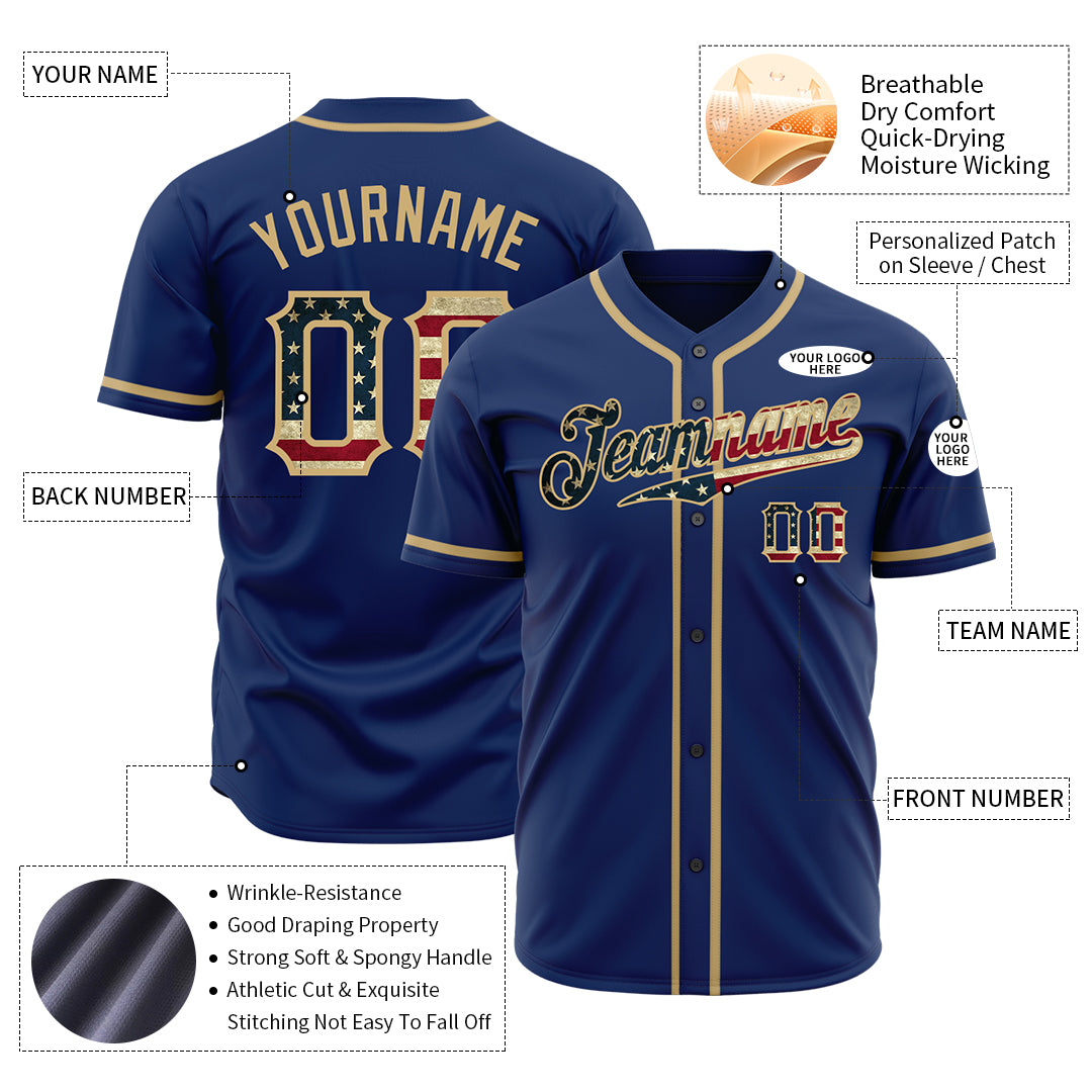 Custom Royal National USA Flag Fans Special Edition Authentic Vintage Baseball Jersey