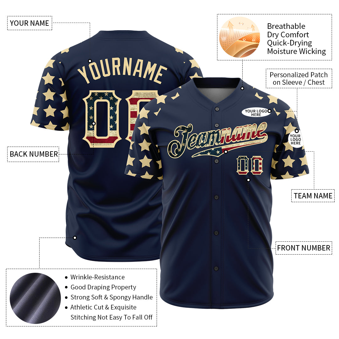 Custom Royal National USA Flag Two Tone Shirts Authentic Vintage Baseball Jersey