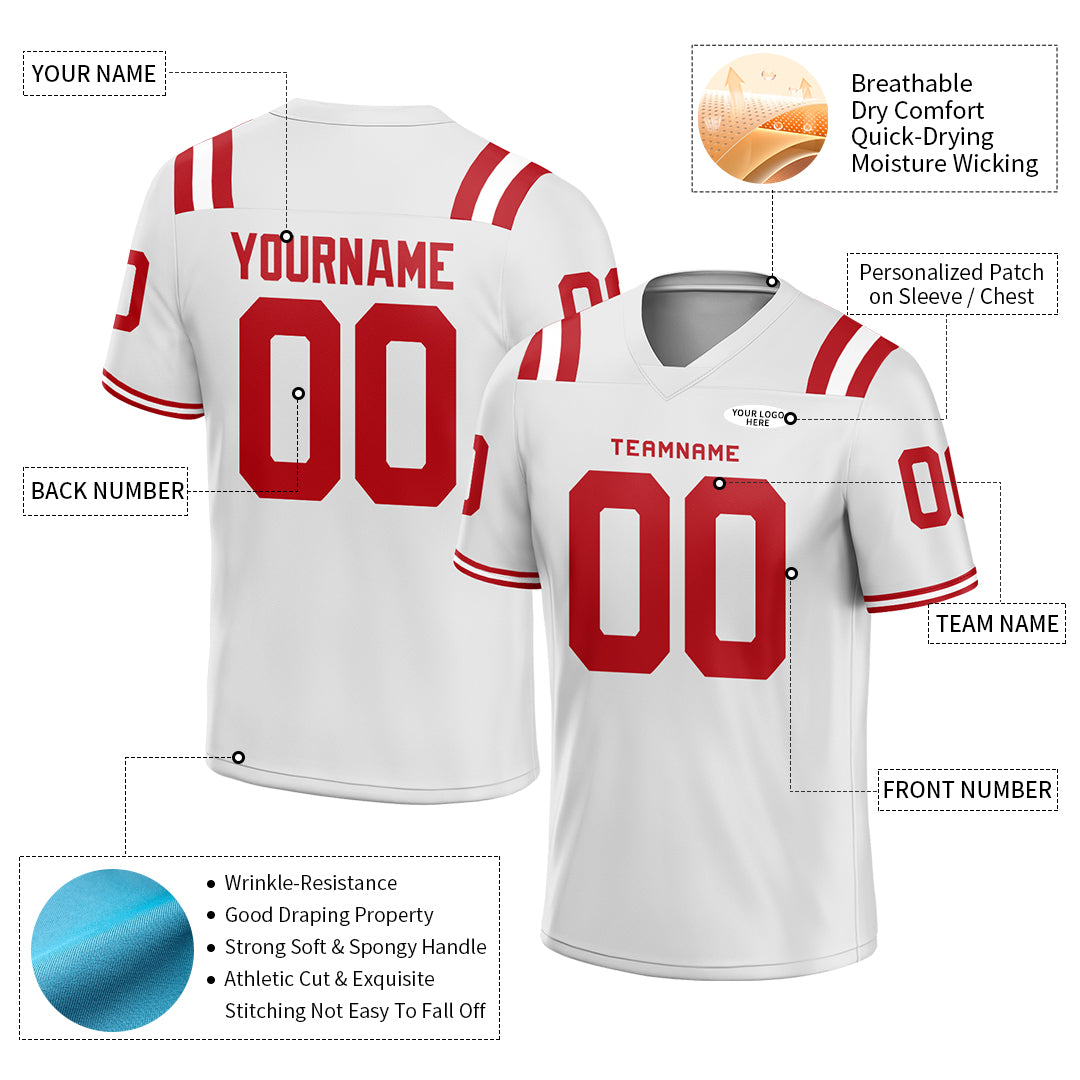 Custom White Football Jersey Athletic Shirt For Adult Youth Unisex