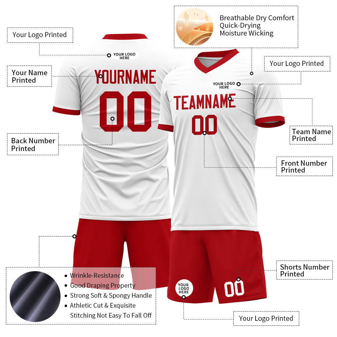 Custom White Soccer Uniform For Adult Youth Fans Jersey