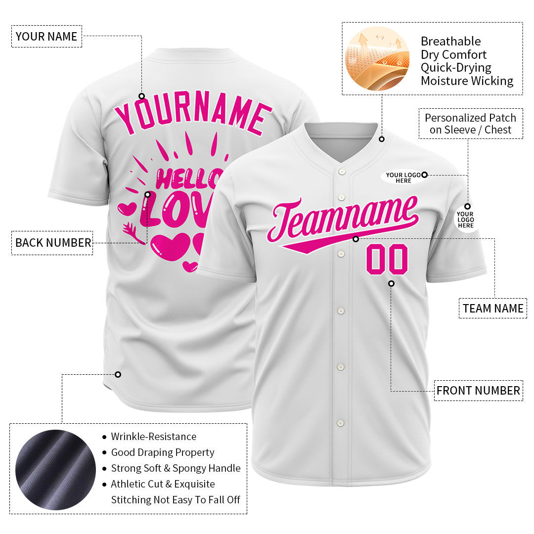 Custom White Valentine's Day Baseball Jersey Fans Special Edition Authentic Shirt
