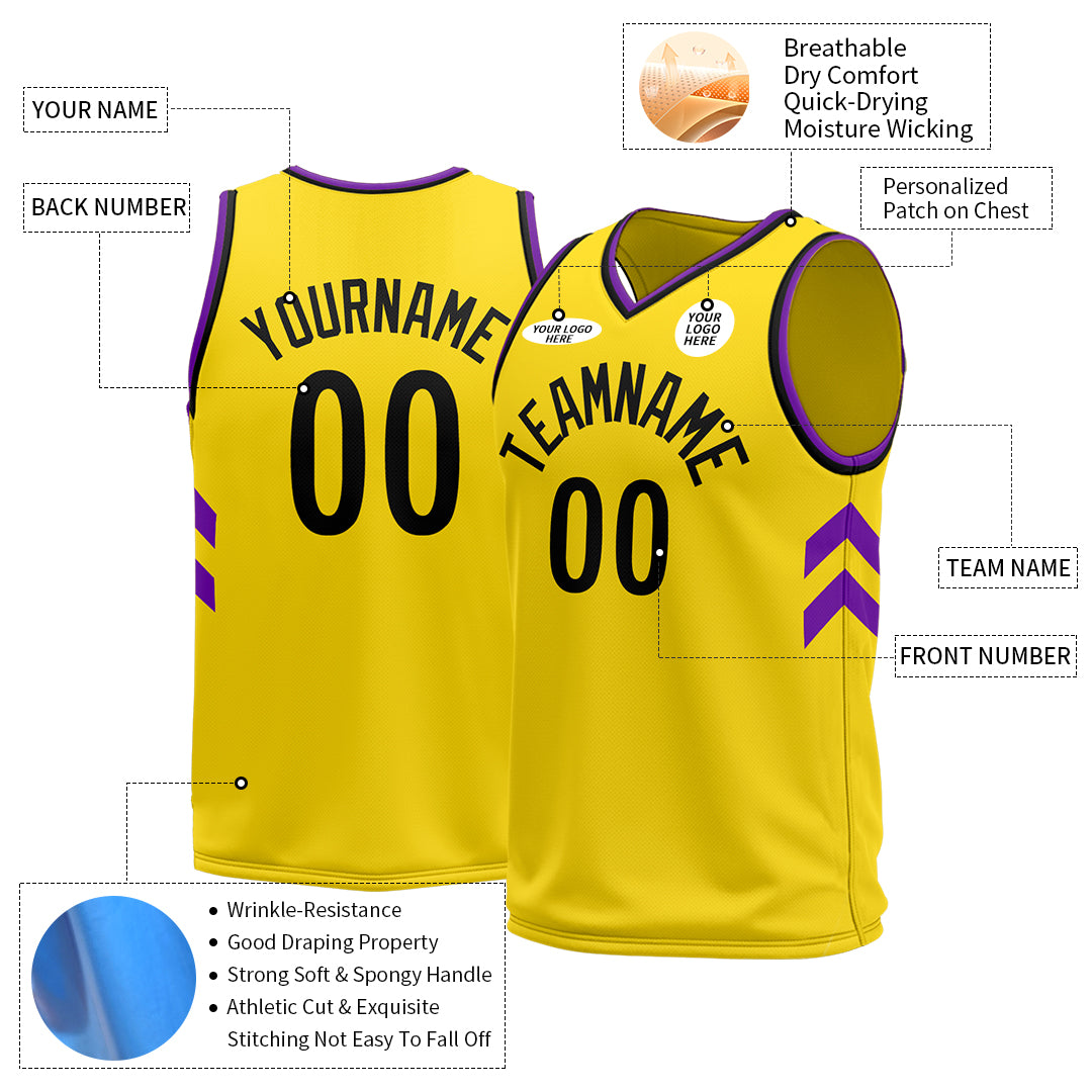 Custom Yellow Basketball Jersey Athletic Sports Shirts For Aldult Youths