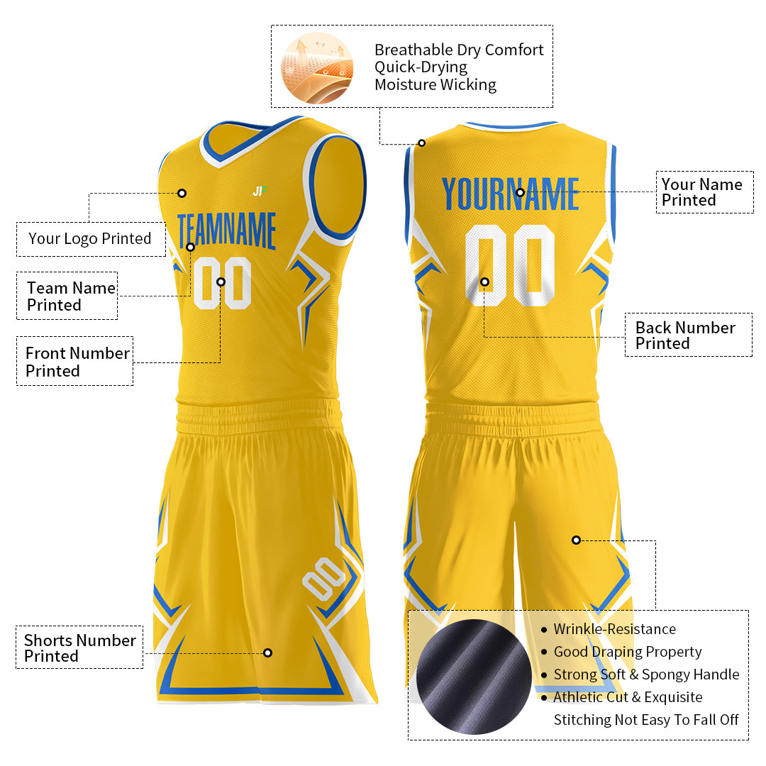 Custom Yellow Basketball Uniform Print Name Number Athletic V Neck Mesh Jersey Design Your Own